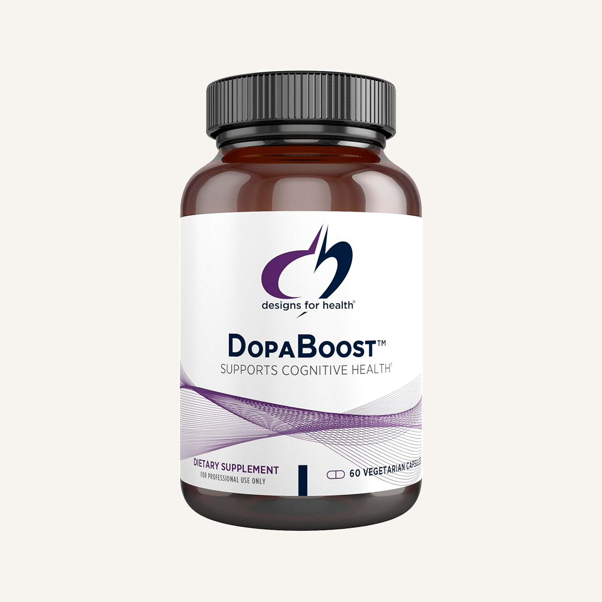 DopaBoost™ is designed to support the body’s natural production of dopamine, one of the body’s primary catecholamines. Dopamine is essential for the normal functioning of the central nervous system, and it is associated with attention, learning, movement, balance, and mood regulation.* The primary ingredient in DopaBoost™ is Mucuna pruriens, a botanical that naturally contains L-Dopa, the metabolic precursor to dopamine, which can cross the blood-brain barrier. Additional ingredients include epigallocatechin gallate (EGCg), acetyl-L-tyrosine, quercetin, and vitamin B6, all selected for their synergistic roles in the production and regulation of dopamine.*